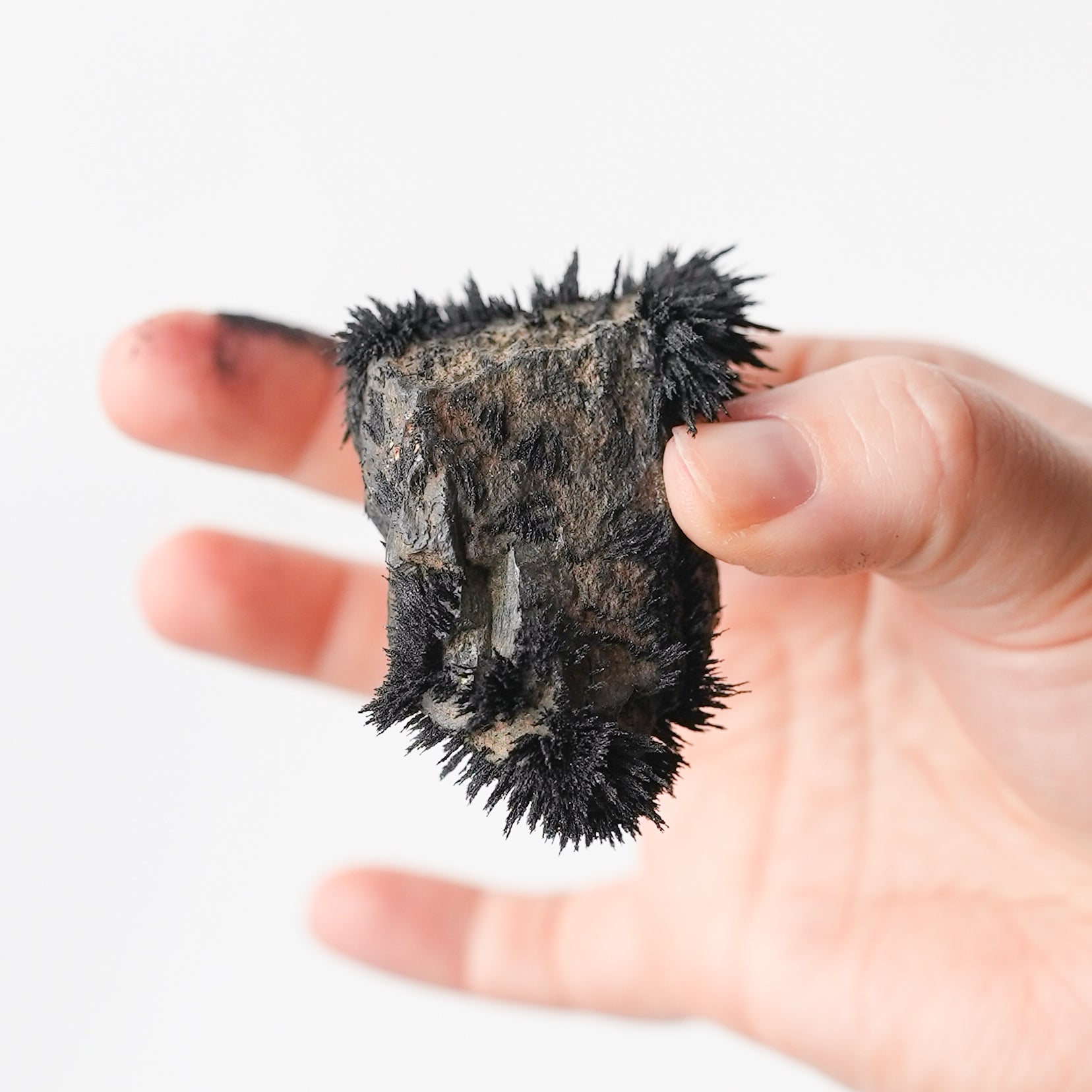 This fun specimen of Lodestone comes with iron filings (attached) and an extra vial of iron filings that can be used to explore the magnetic properties of this specimen.