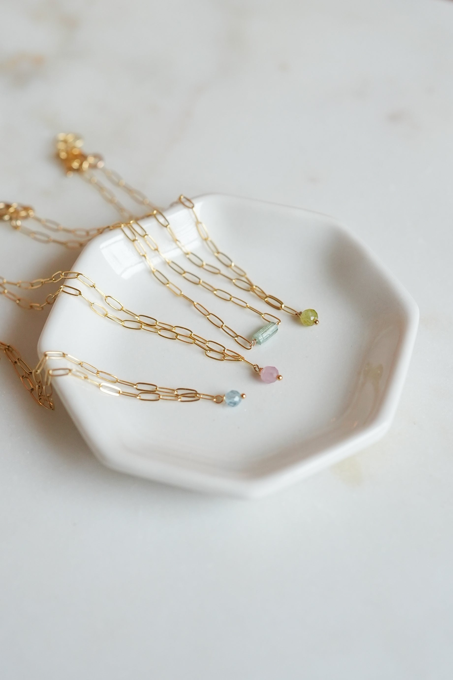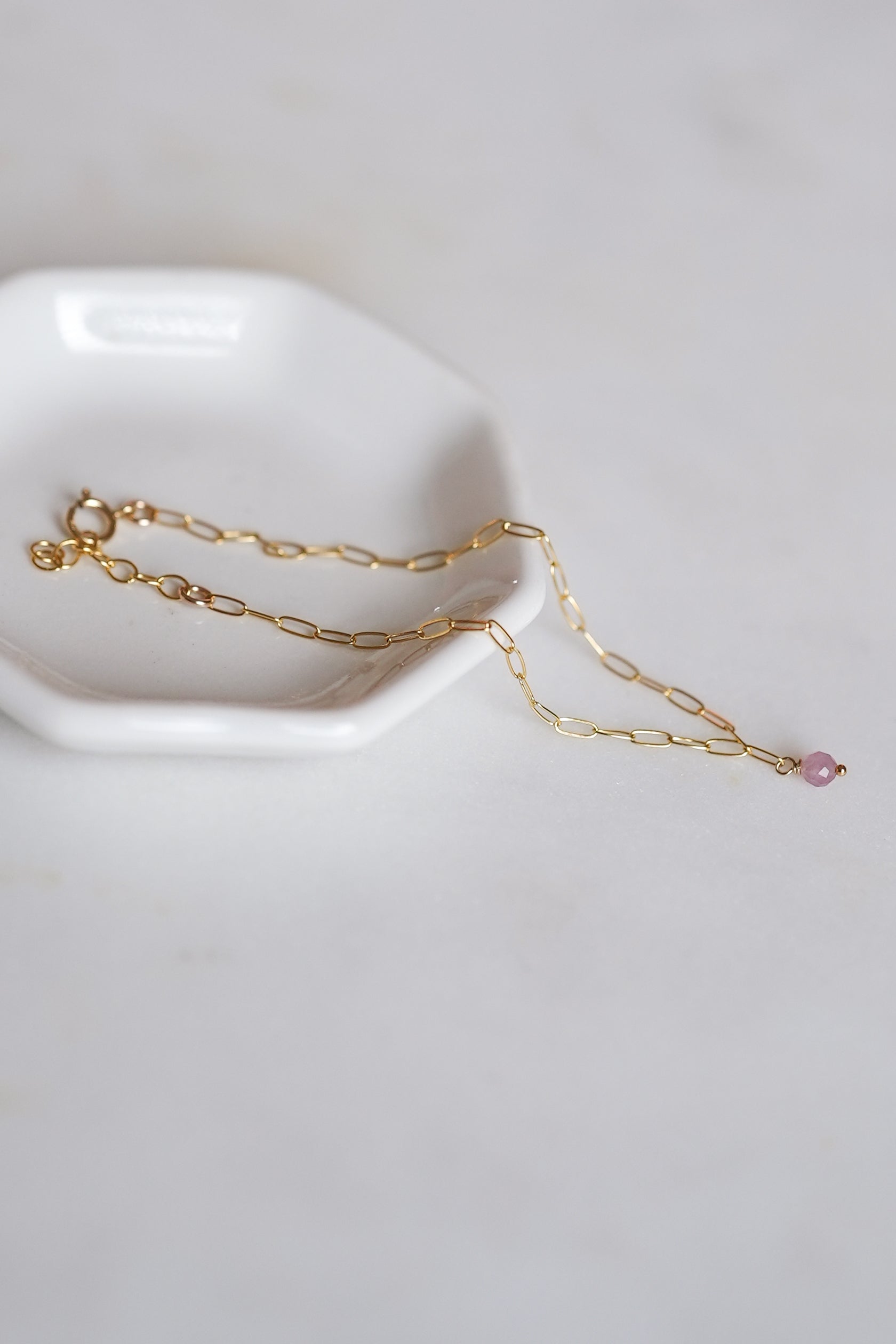 A petite rose quartz link bracelet hand crafted by Richmond, VA based Giant Lion. 14k goldfill.