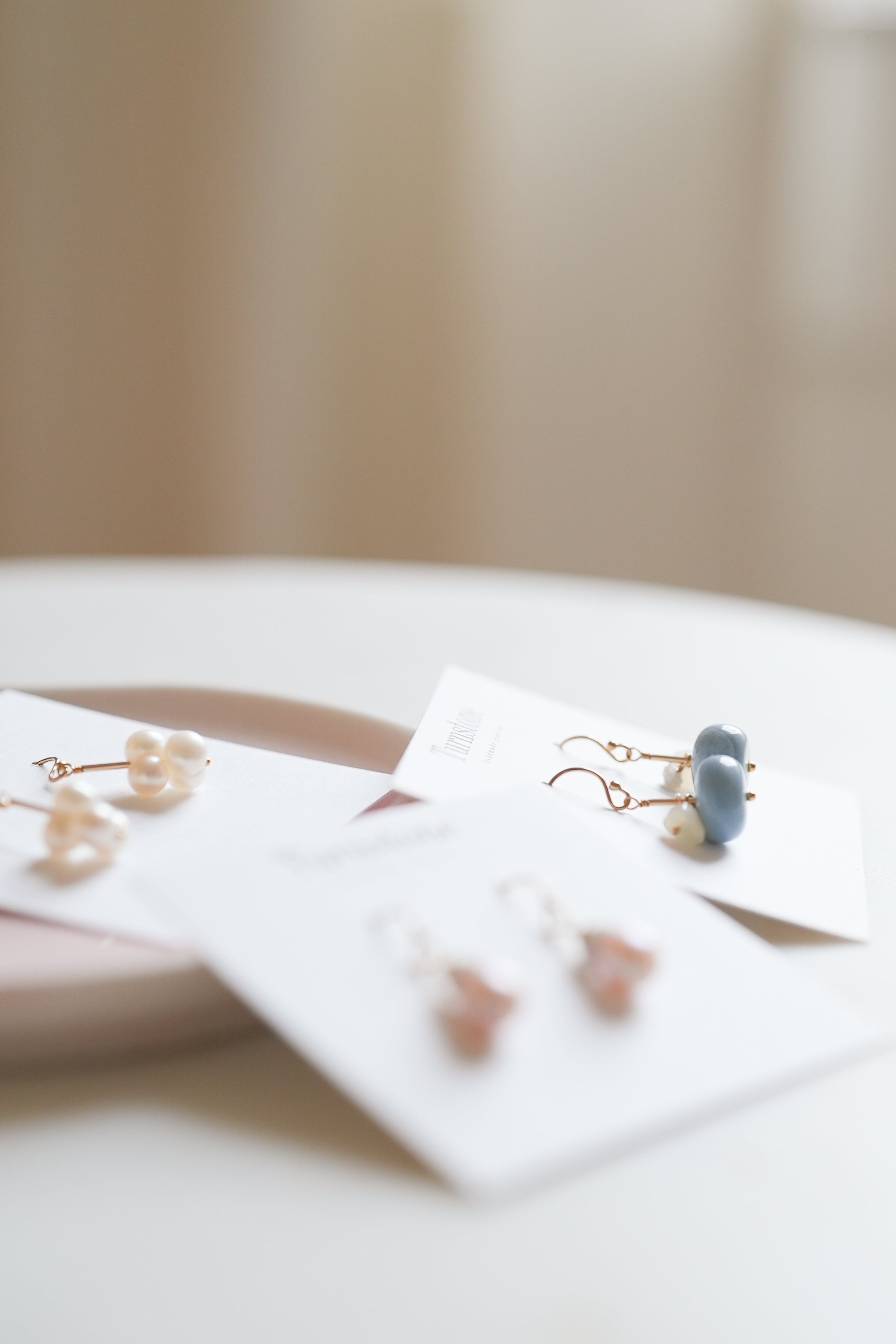 A one of a kind pair of blue opal and tiny raw diamond dangle earrings. Made with a goldfill post by local brand Turnstone Jewelry.