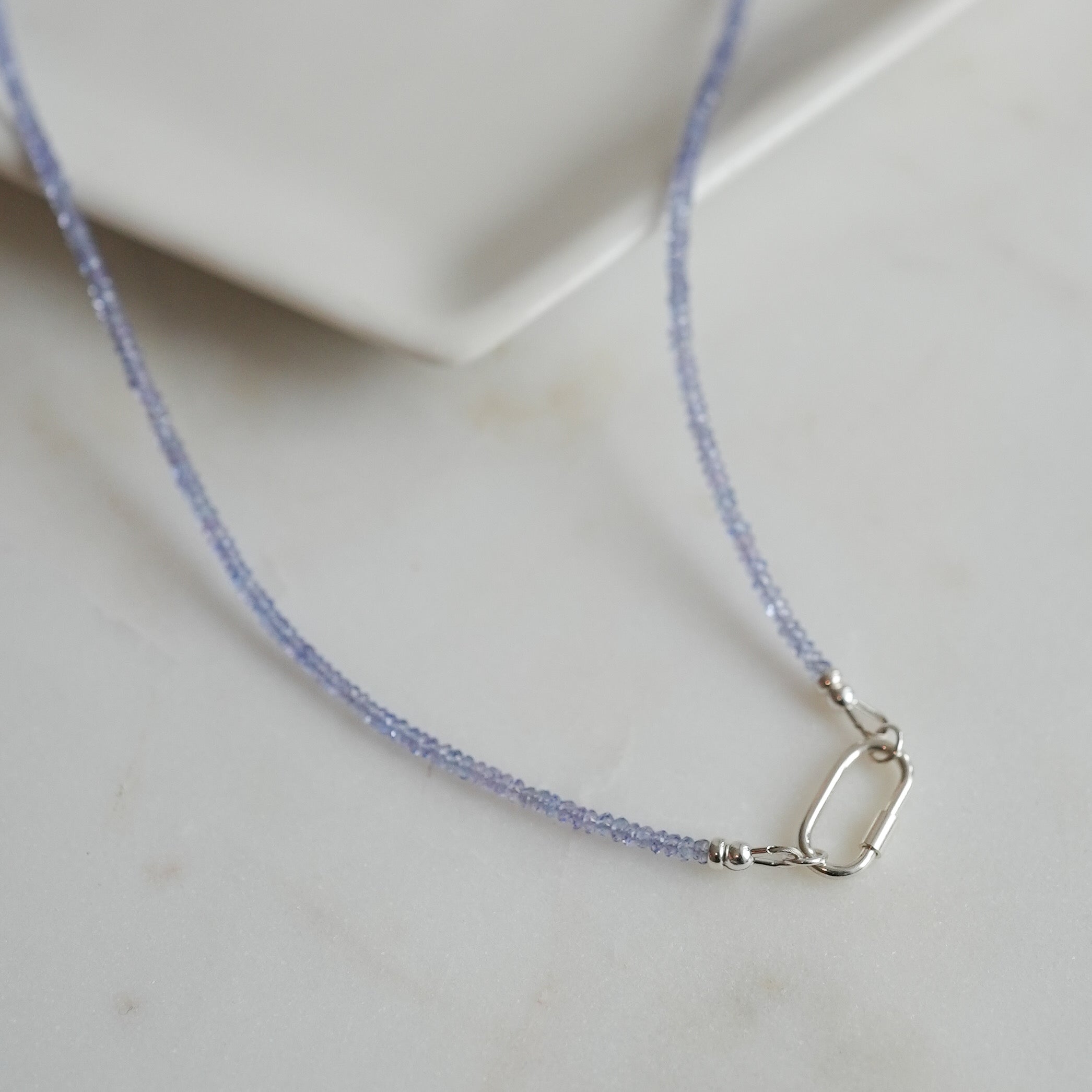 Delicate Tanzanite Beaded Necklace with Sterling Silver Carabiner