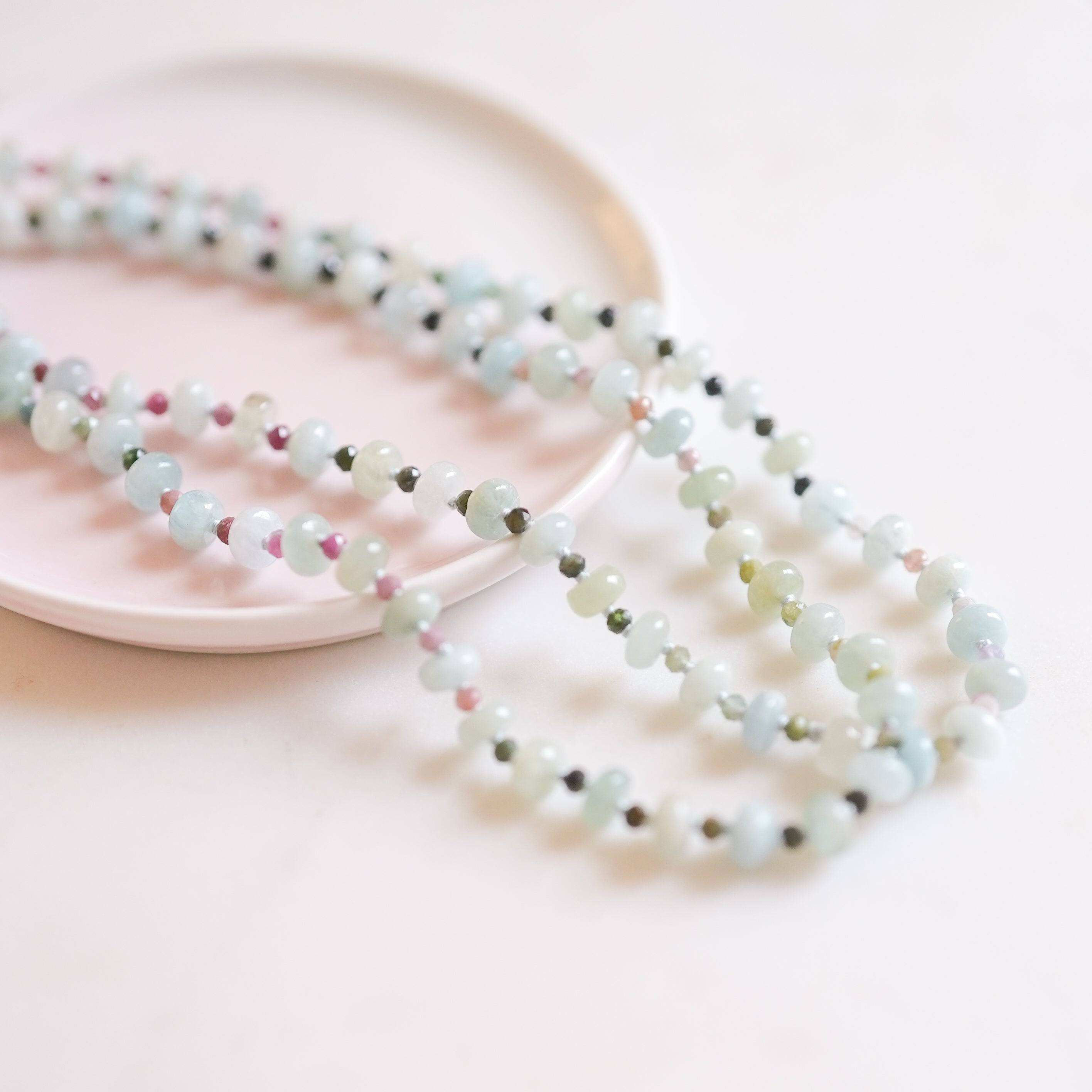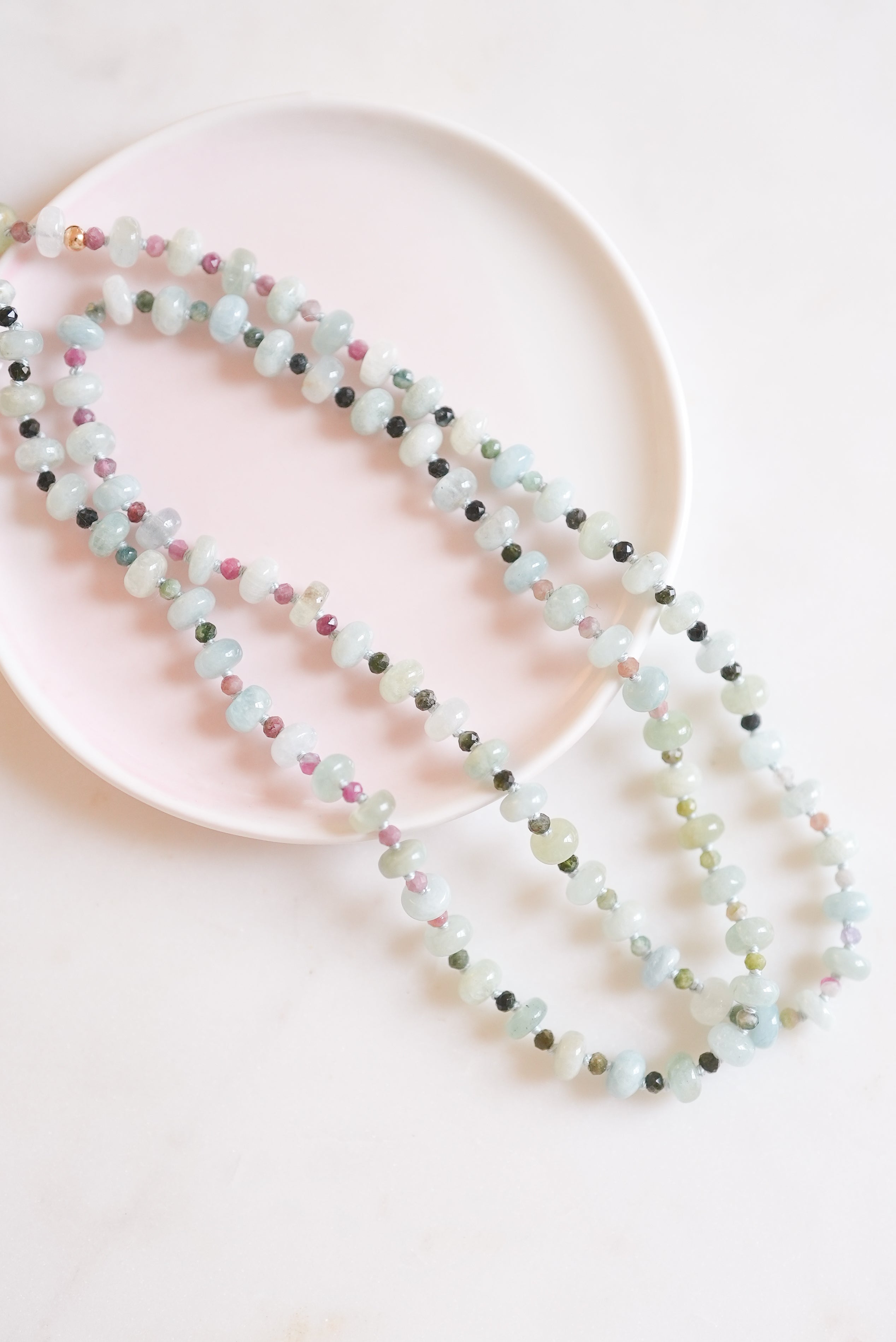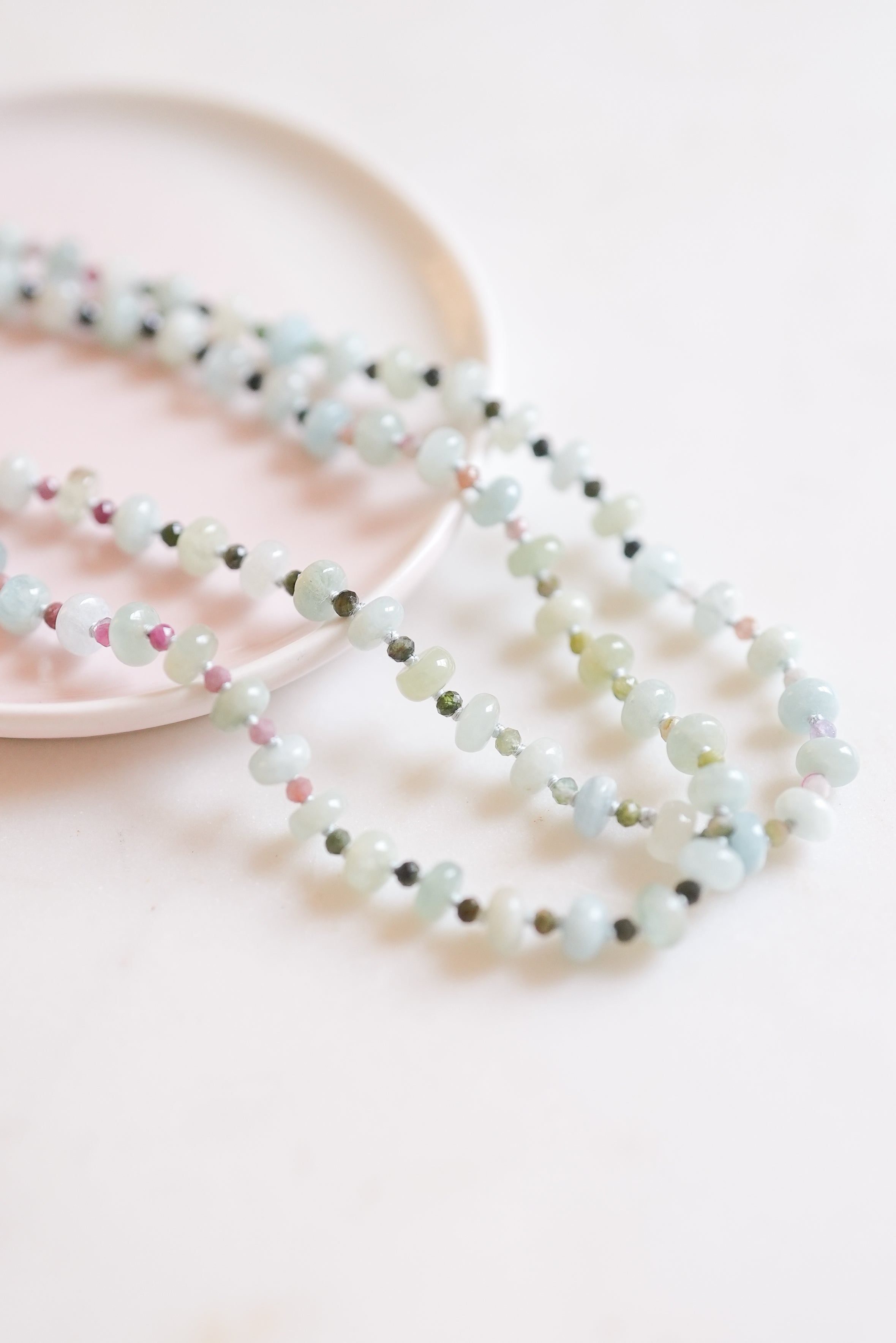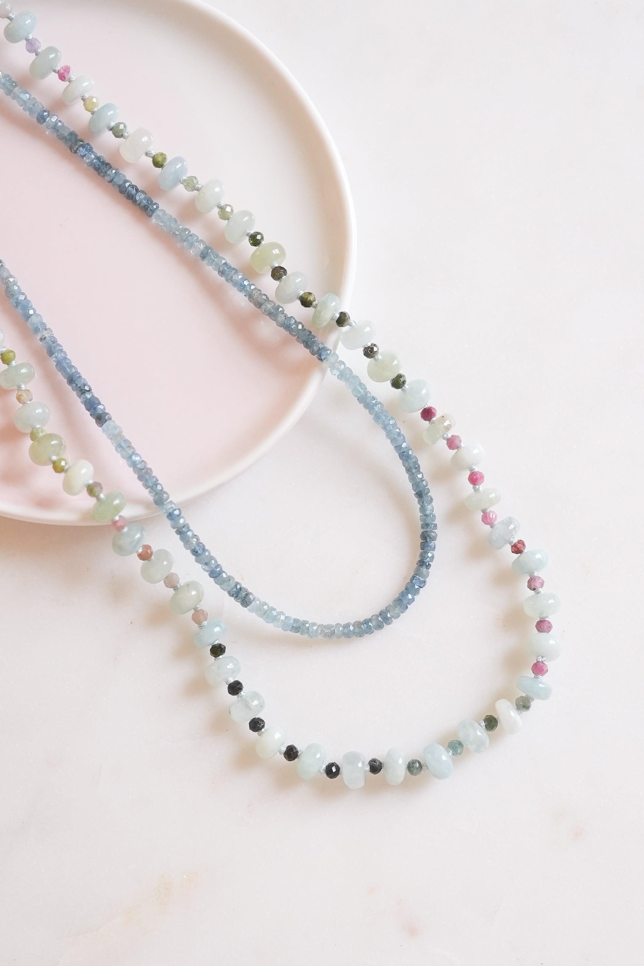 Part of the Radiant Horizons collection, this hand-knotted gemstone necklace captures the ever-changing colors of the sky. Each one-of-a-kind piece reflects nature’s light, designed to bring a touch of natural beauty and color to your everyday style.