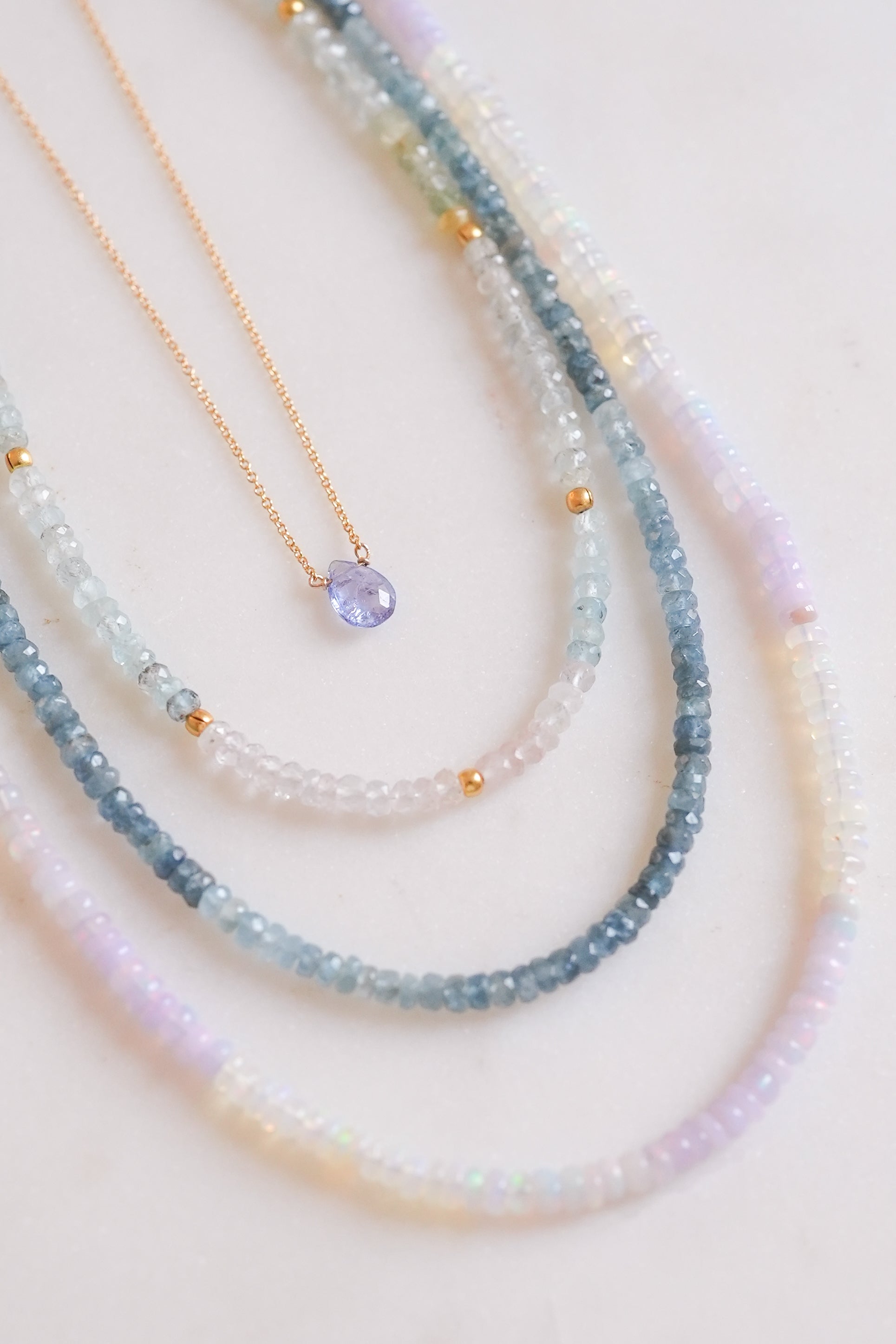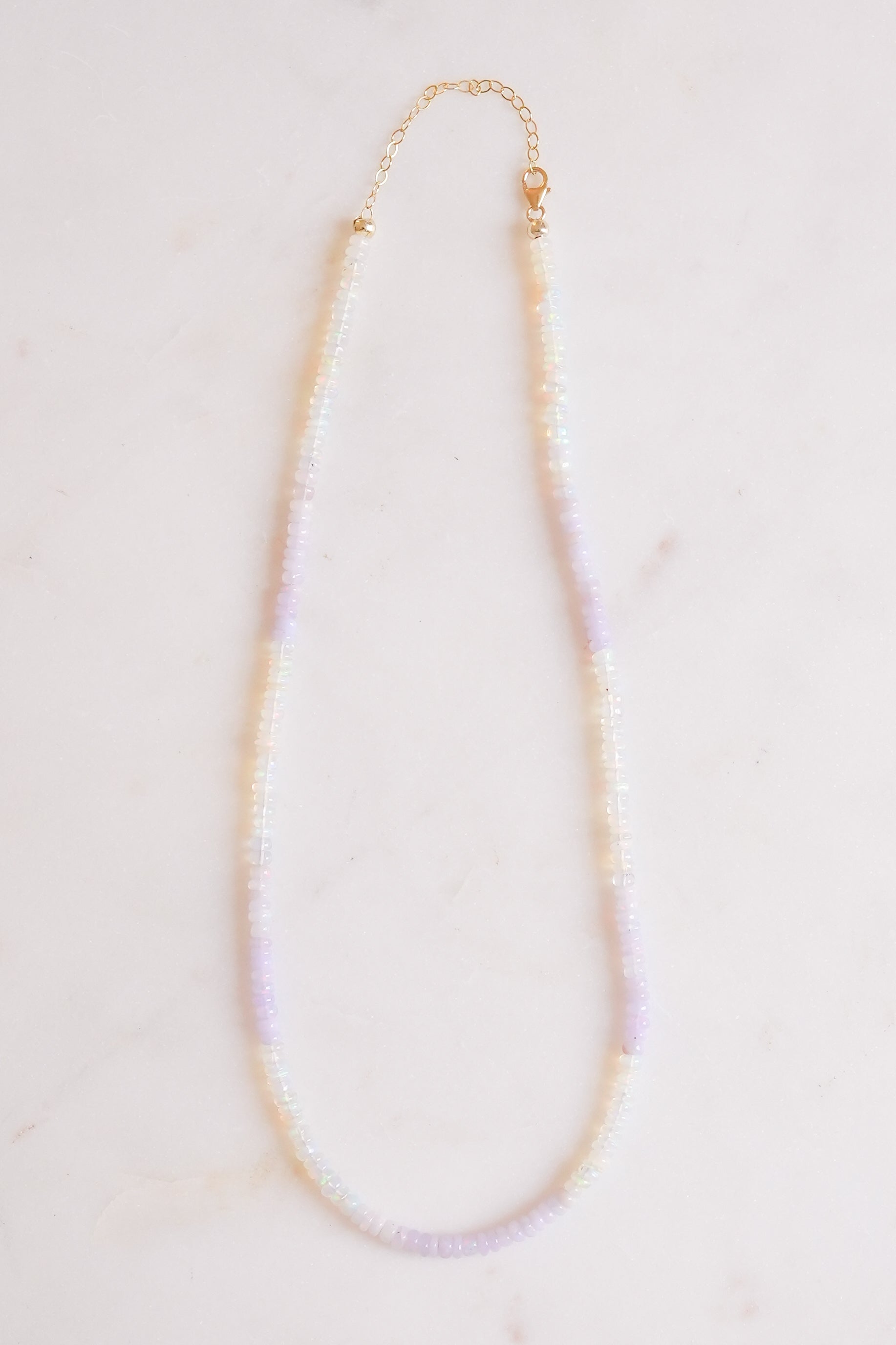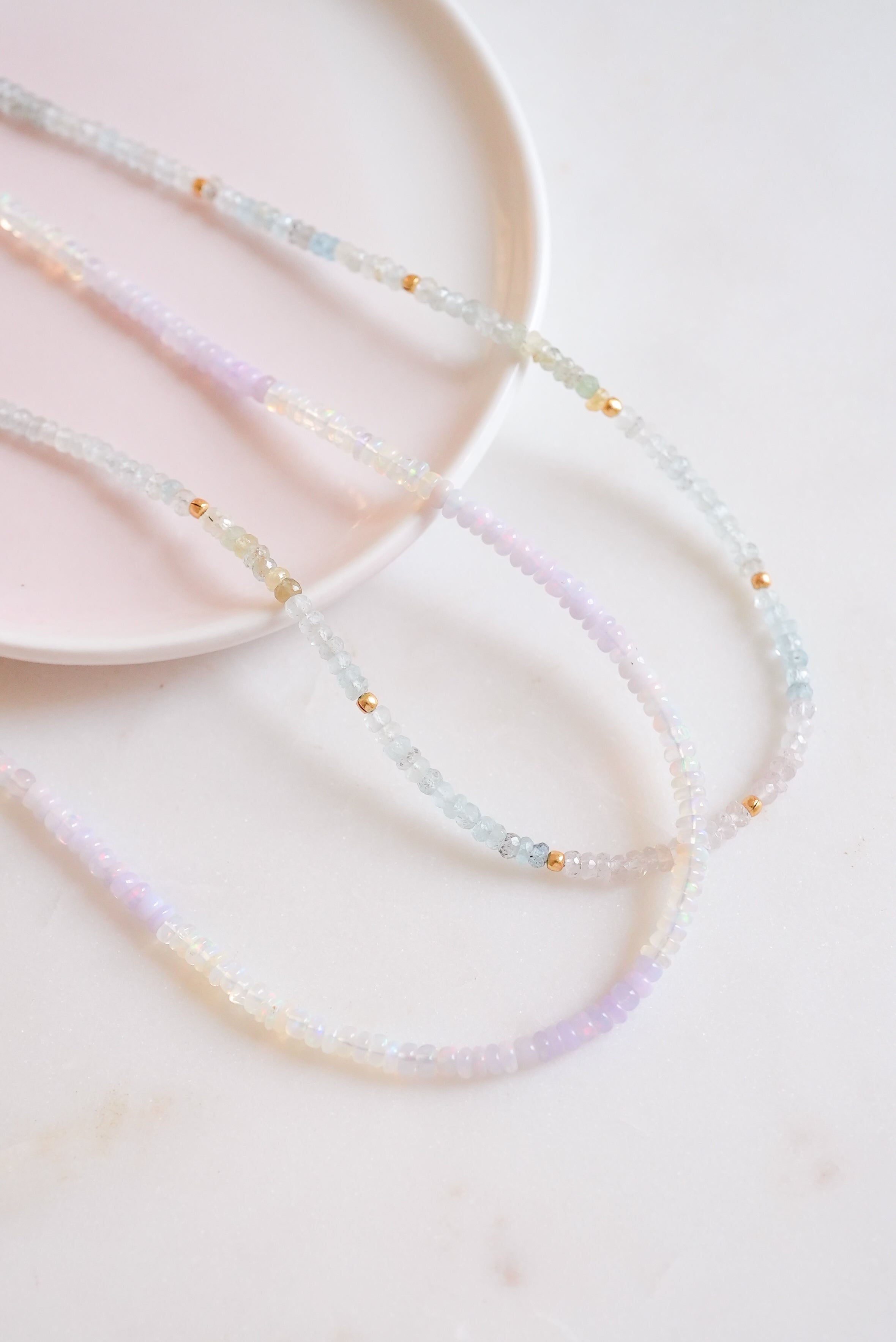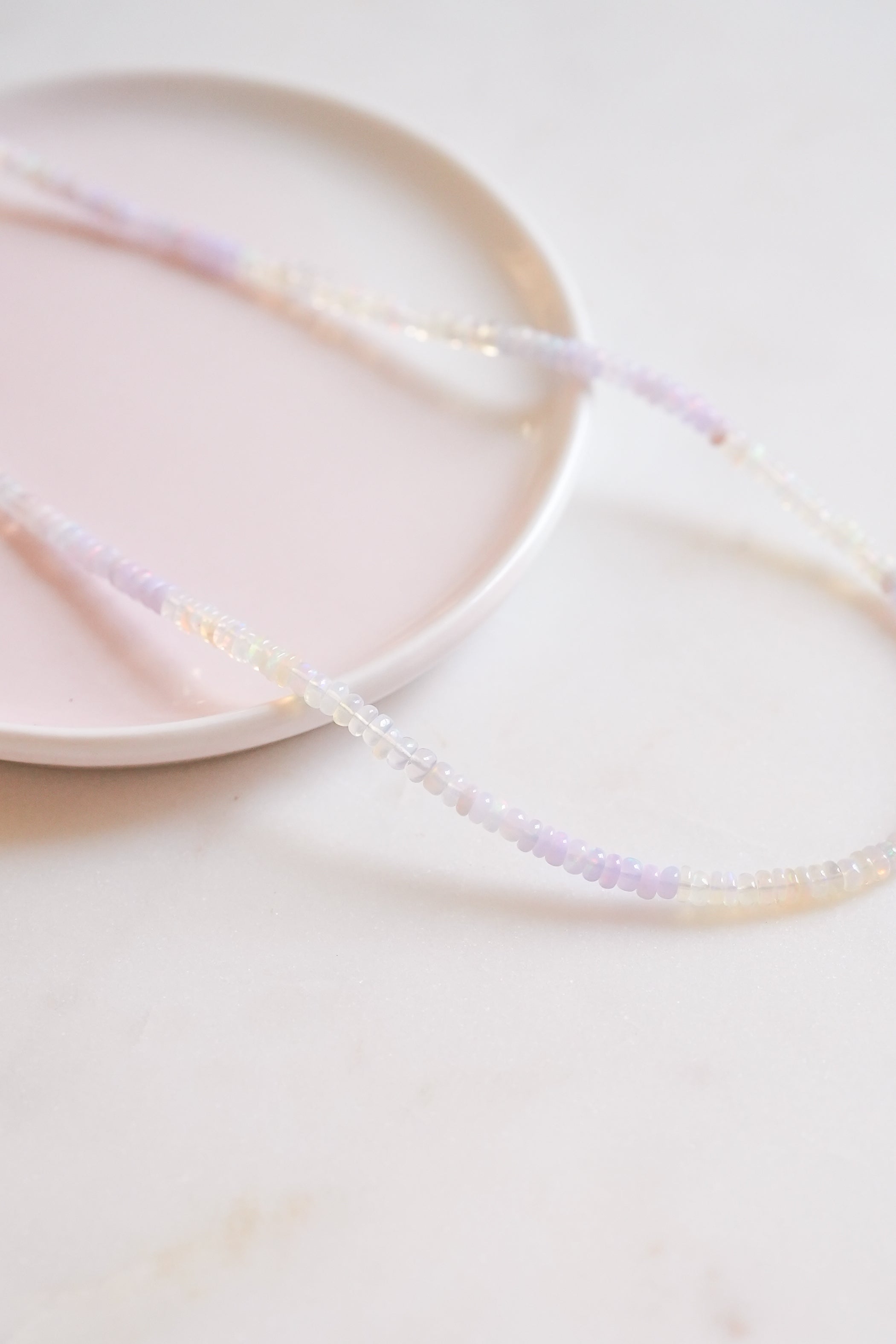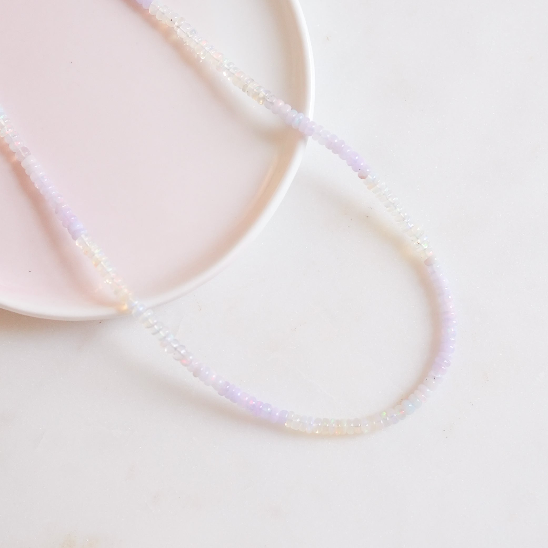 Hand strung Lavender and White Fire Opals.