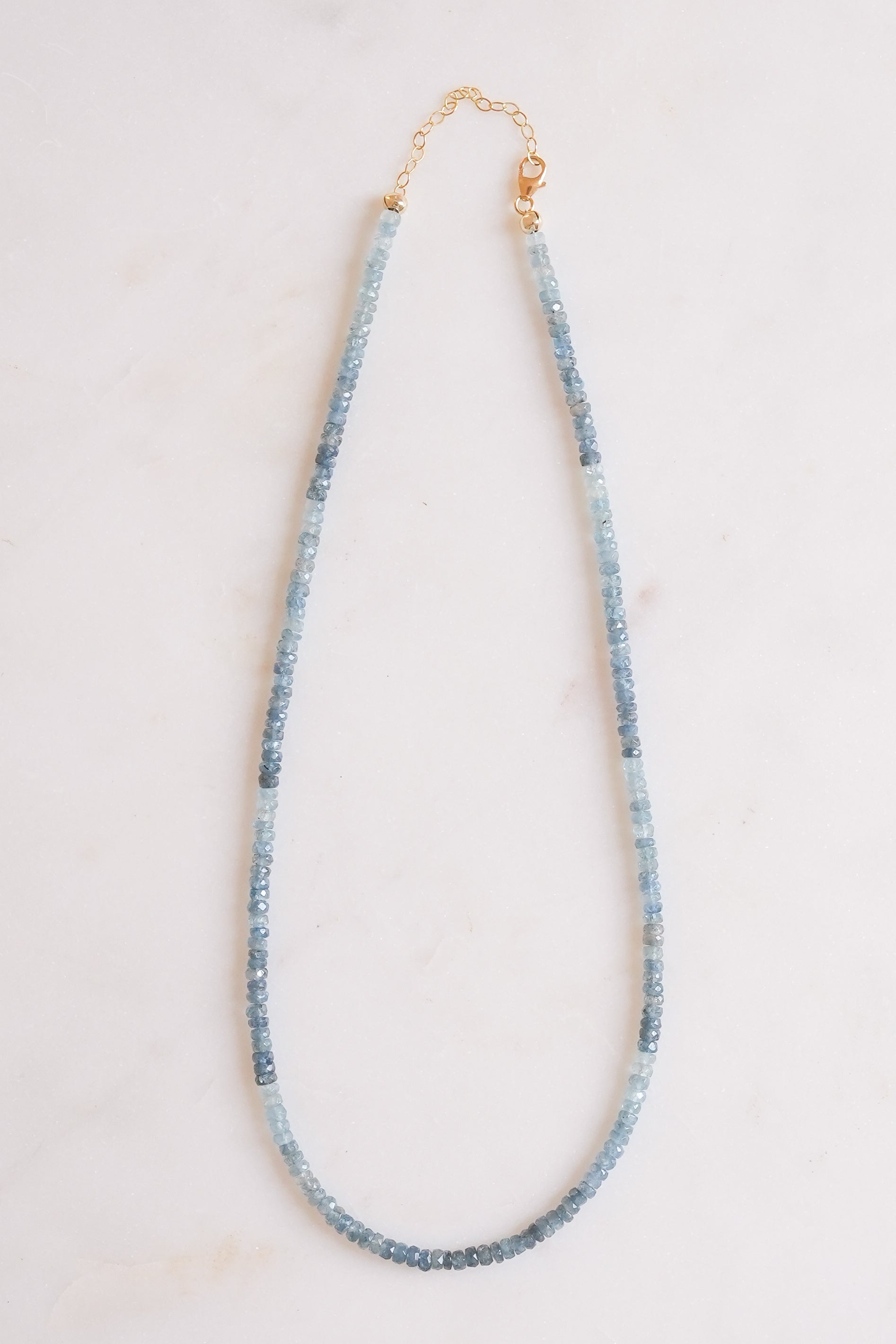 Ombre Blue Aquamarine Beaded Gemstone Necklace