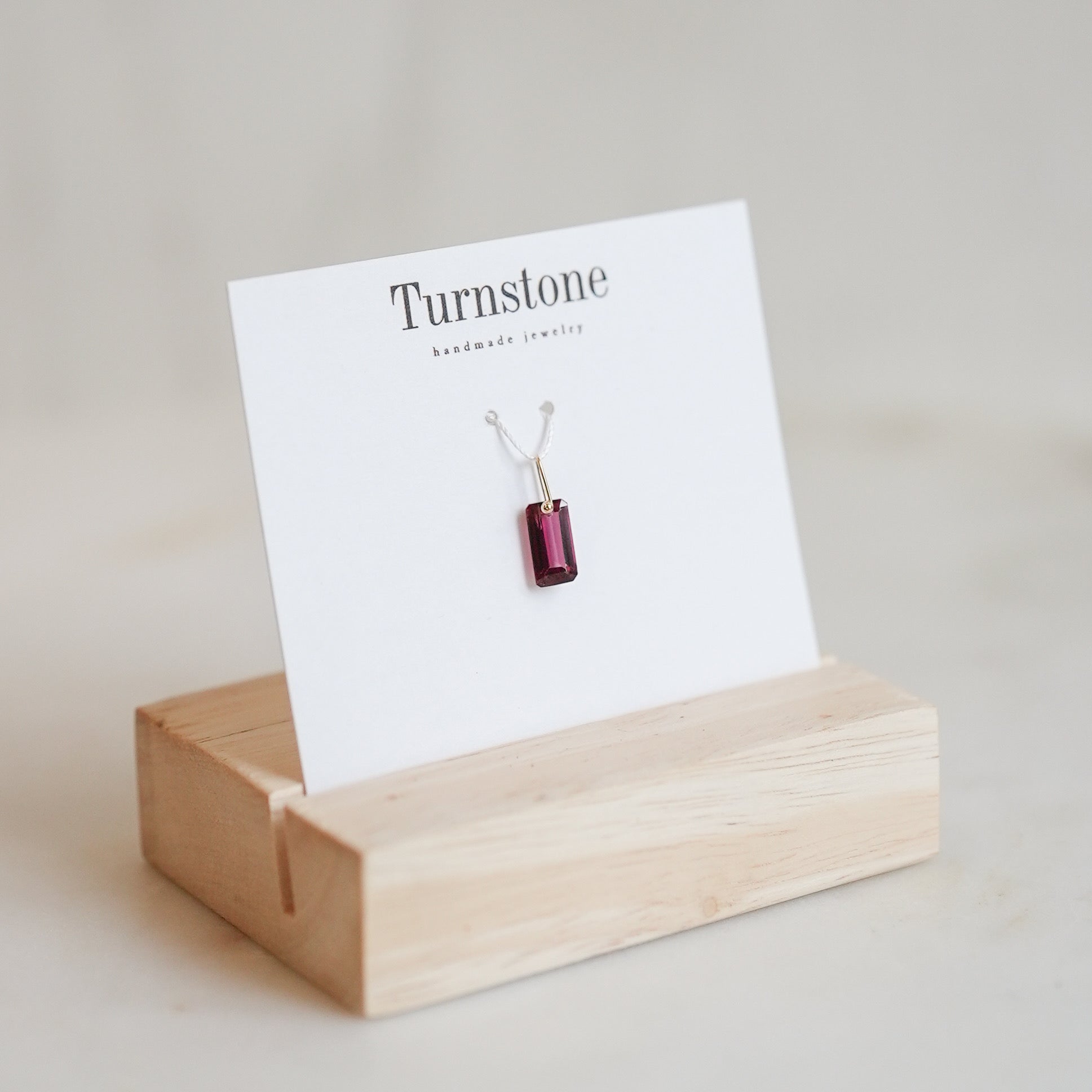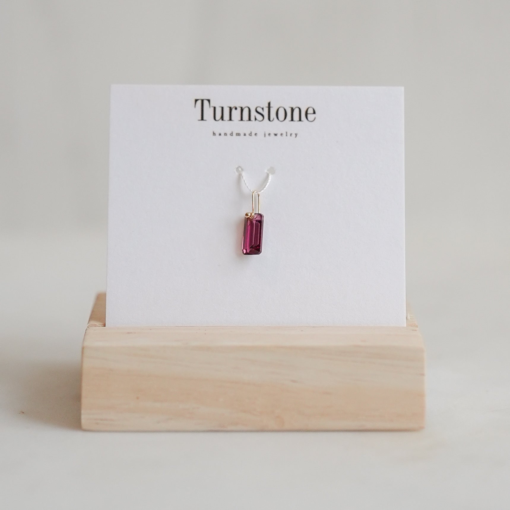 A beautiful little berry-toned garnet bar on 14k gold fill wire. Handcrafted in DC by Turnstone Jewelry.
