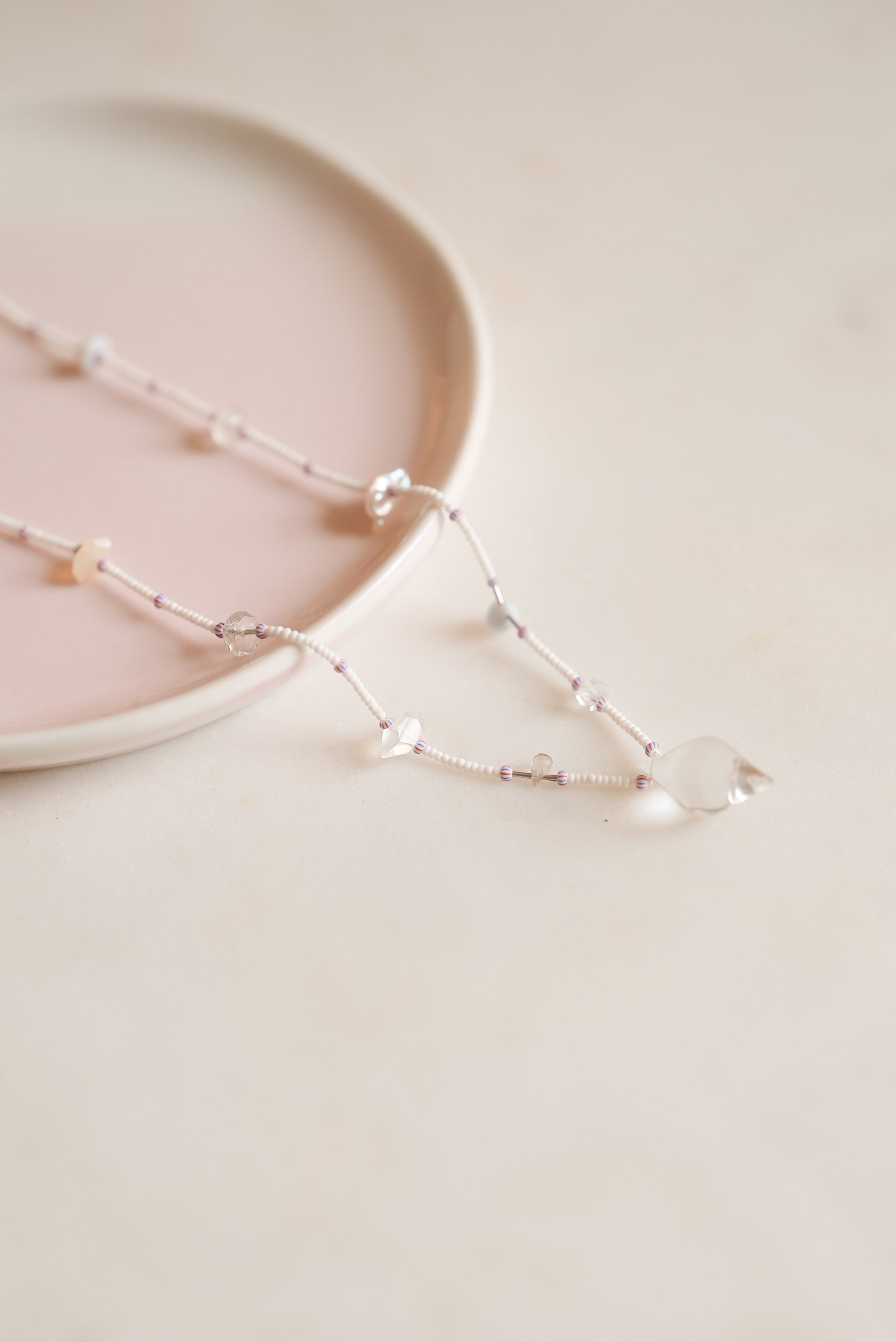 Clear Quartz Drop and White Seed Bead Long Necklace